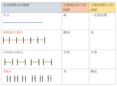 所以不是用舌頭推氣,而是用氣通過的時間長短來製造長短音的效果